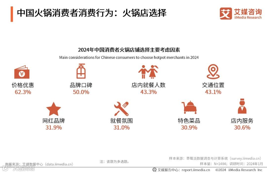 14.2024年中国消费者火锅店铺选择主要考虑因素