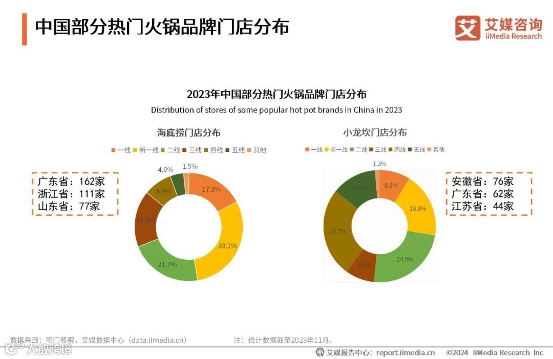 中国部分热门火锅品牌门店分布