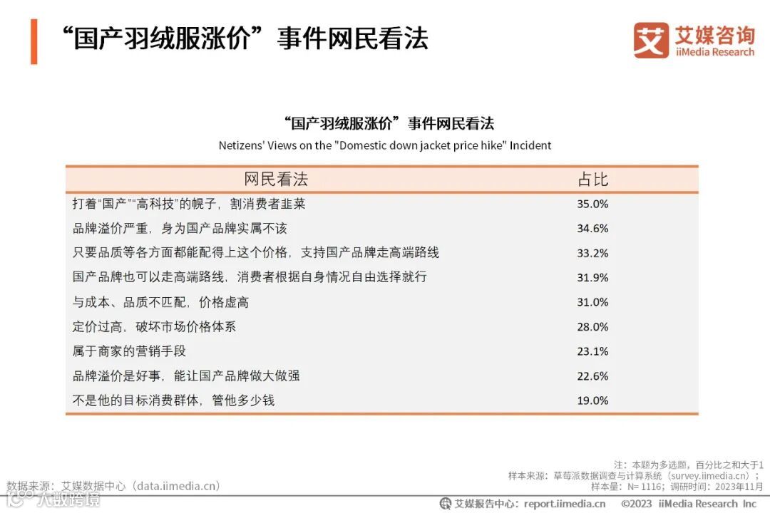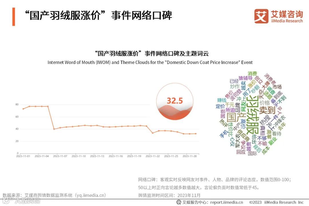艾媒咨询 | 2023年“国产羽绒服涨价”事件商情监测分析报告 艾媒服务号
