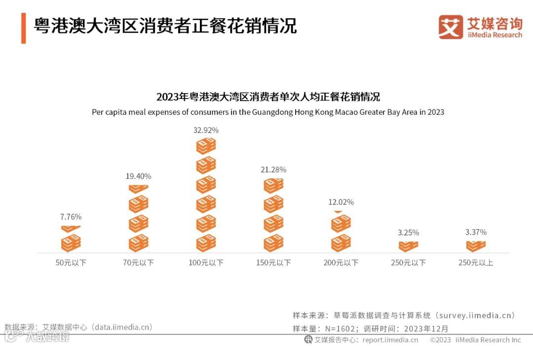 粤港澳大湾区消费者正餐花销情况