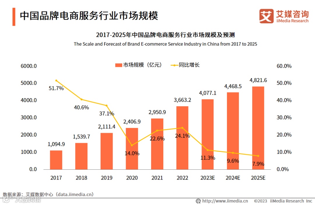 市场规模:中国品牌电商服务行业需求持续增长,预计2025年其市场规模将达4821.6亿元