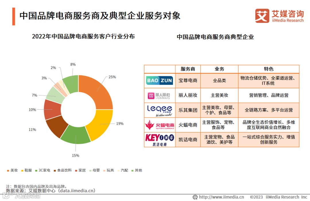 中国品牌电商服务商及典型企业服务对象