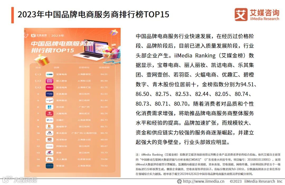 2023年中国品牌电商服务商排行榜TOP15