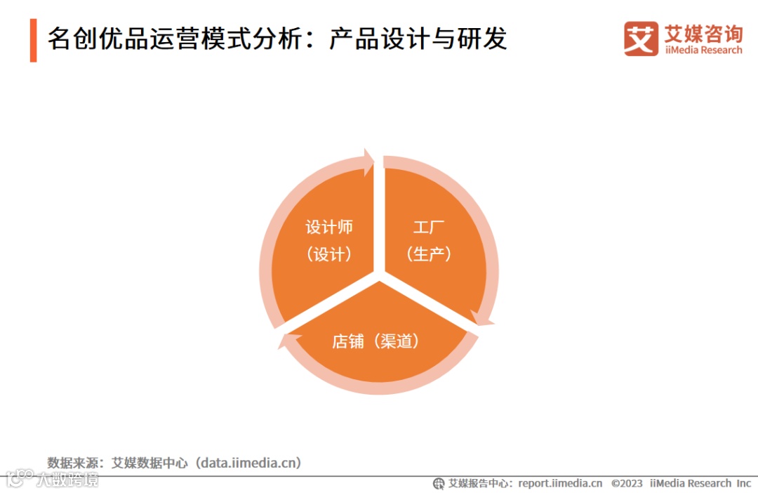 2017-2022年,名创优品聚焦产品设计与研发,积极探索和搭建设计师共享平台,使工厂、设计师、店铺三者形成一个产业链闭环,坚持原创输出。2018年,名创优品专门成立原创设计研究院MOD(MINISO ORIGINAL DESIGN)。2022年,名创优品拥有8800+SKU,覆盖生活全品类的产品,产品上新始终坚持“711原则”,即每隔7天从10000个产品创意中挑选100个新的SKU,平均每月推出约550个SKU。在产品定价上,国内名创优品门店中超过95%的商品售价在50元人民币以内。