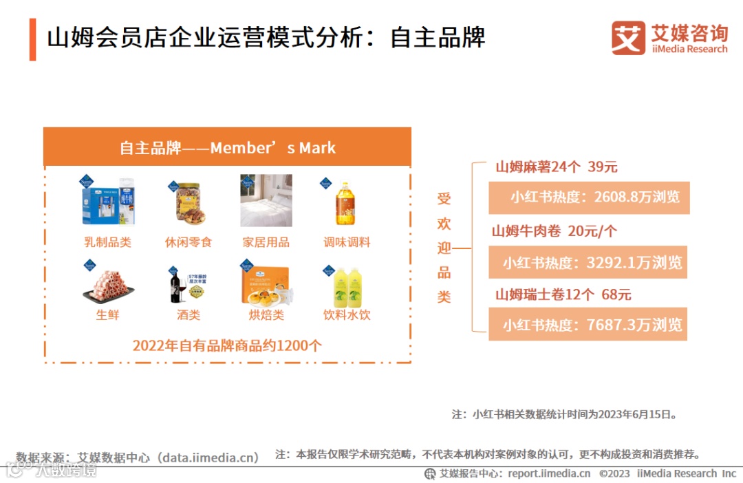 截至2022年12月31日,山姆会员店当中有超过4000个SKU,自有品牌商品占比约30%,拥有忠诚度较高的消费群体。在2023年5月,山姆会员店宣布推出多款十周年庆新品,囊括食品、家电、化妆品等品类。艾媒咨询分析师认为,山姆积极打造和升级自有品牌,与其他会员店形成差异化,提高自身竞争力。