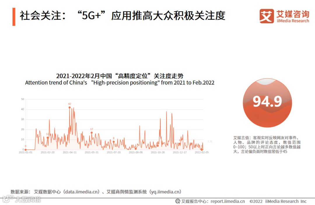 “高精度定位”的艾媒言值高达94.9,社会普遍对国内高精定位市场的发展持积极乐观的态度。