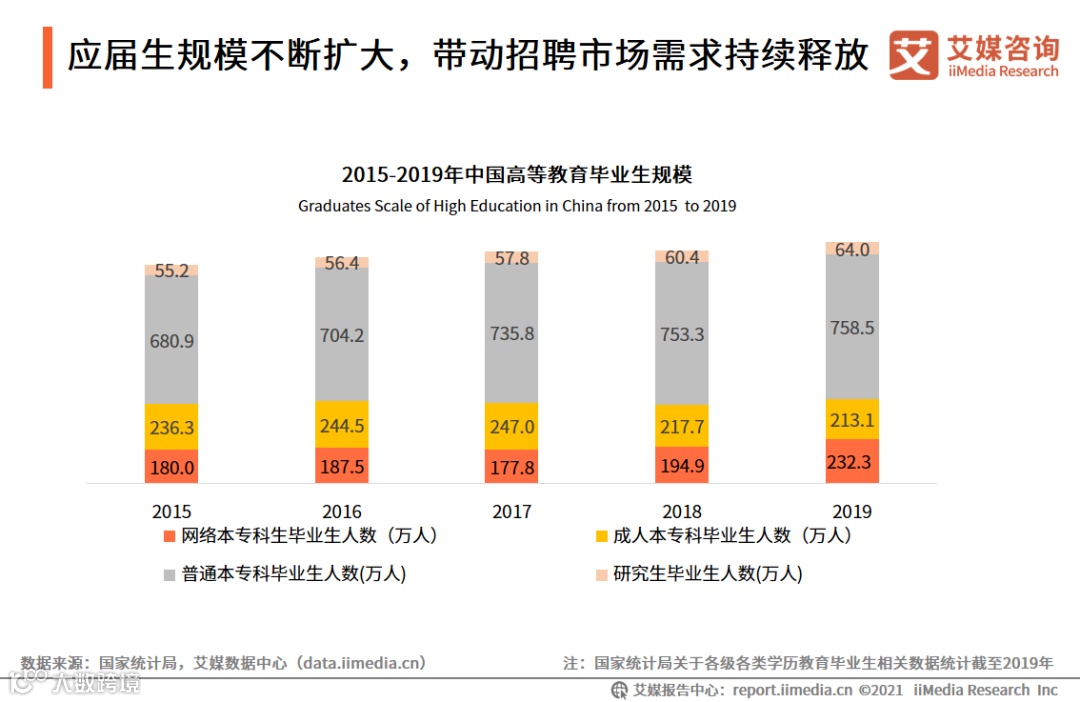 4. 应届生规模不断扩大,带动招聘市场需求持续释放