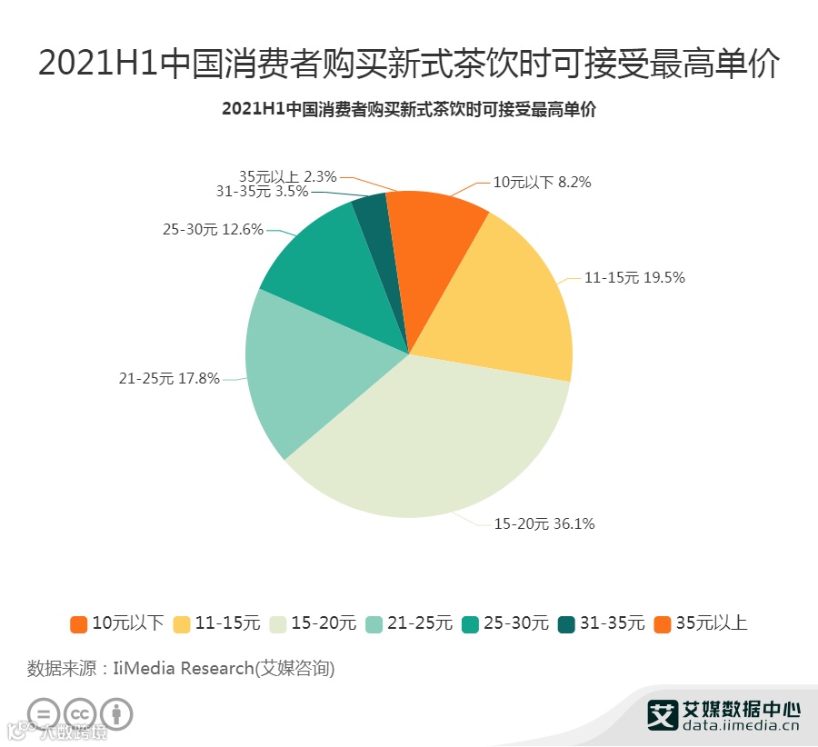 36.1%消费者可接受的新式茶饮最高单价为15-20元