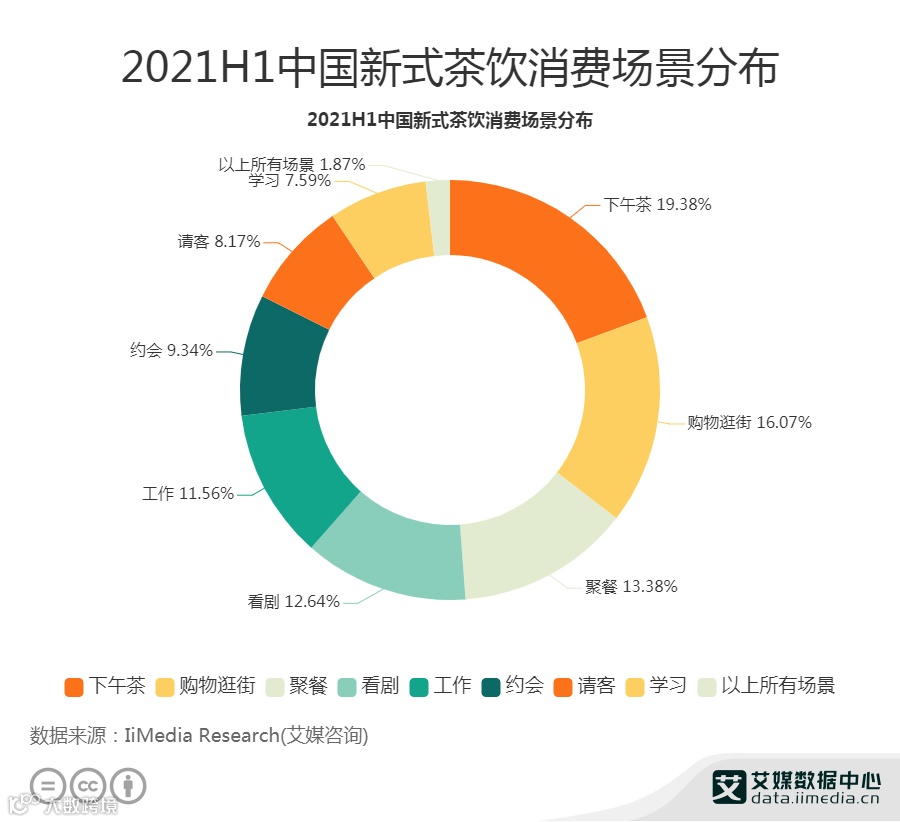 19.38%消费者在下午茶时消费新式茶饮