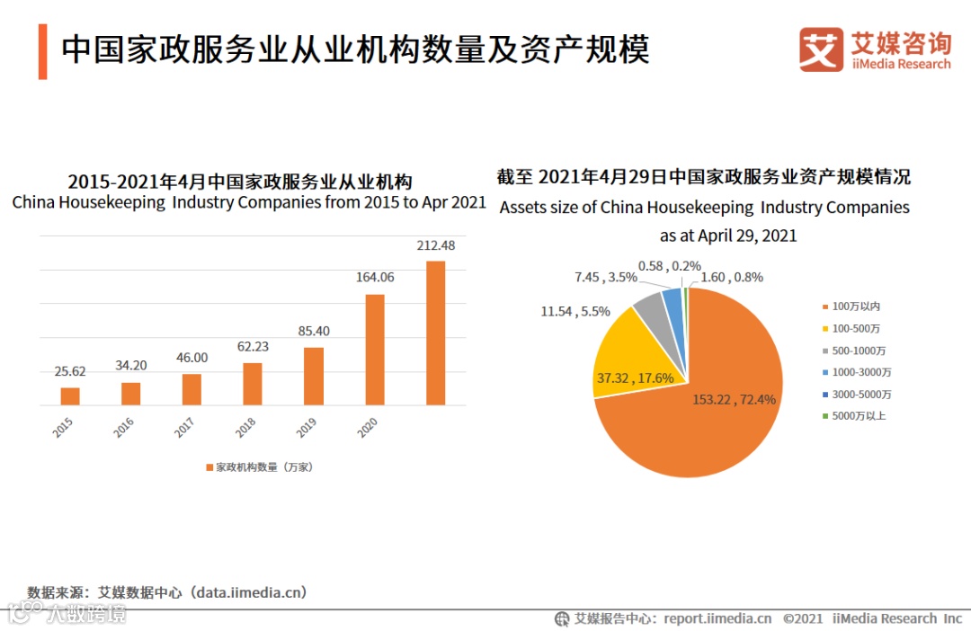 以上内容源自艾媒咨询发布《2021中国家政服务行业发展剖析及行业投资机遇分析报告》,完整版共84页;限于公众号篇幅,故仅摘部分数据和观点,如有兴趣深入,移步报告中心官网下载。戳我下载
