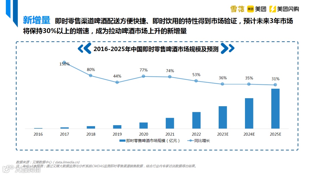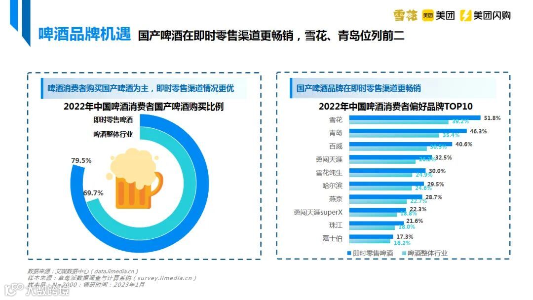 即时零售推动线下零售与线上流量入口深度融合,扩大了实体零售的服务半径,为中国零售业注入了新活力,也为品牌商家开辟了一条全新赛道。近几年来,诸多啤酒品牌纷纷加码即时零售赛道,谋求发展新路径。在未来,伴随即时零售啤酒品类日益丰富,啤酒消费者的即时饮用需求将进一步释放,啤酒市场也将迎来新一轮的增长机遇。