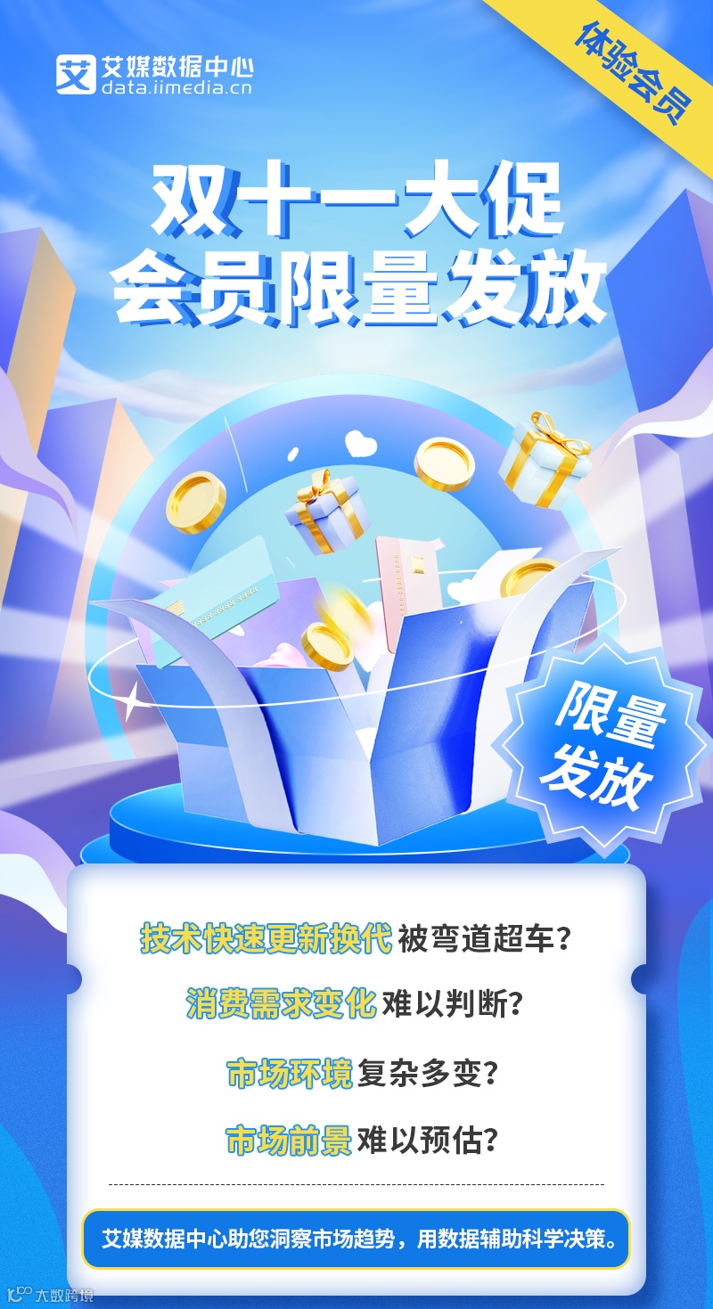导读:双十一到来之际,艾媒数据中心推出9元15天体验会员,精选524个垂直行业,超2亿条行业数据,助力洞察市场趋势,用数据辅助科学决策。