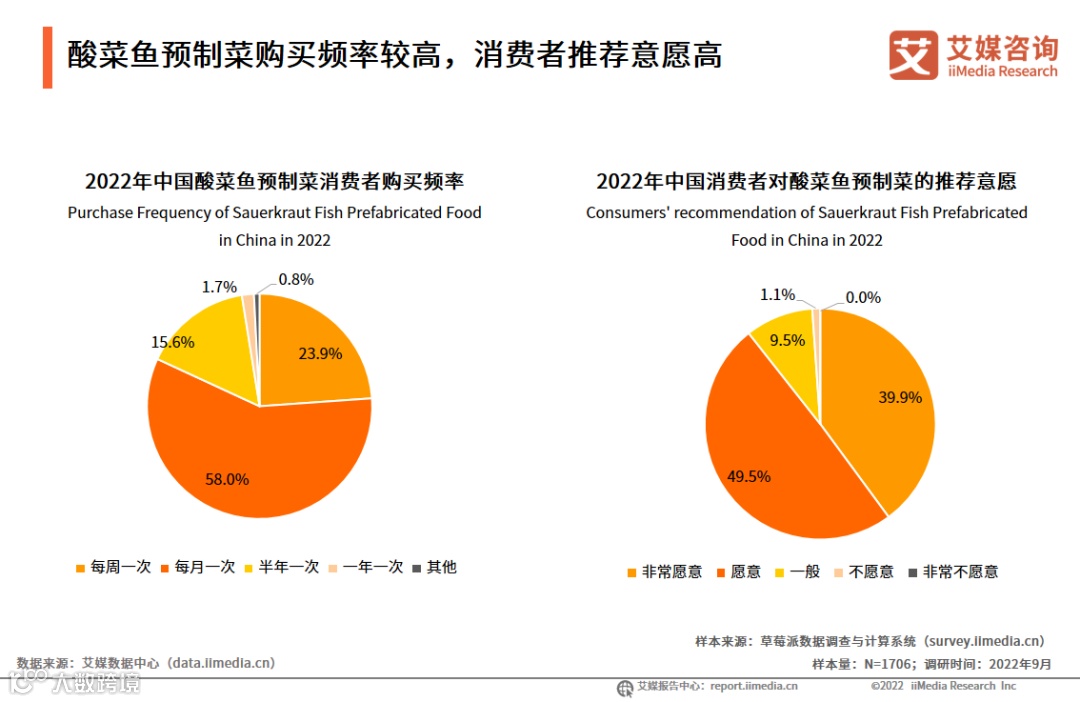 酸菜鱼预制菜购买频率较高,消费者推荐意愿高