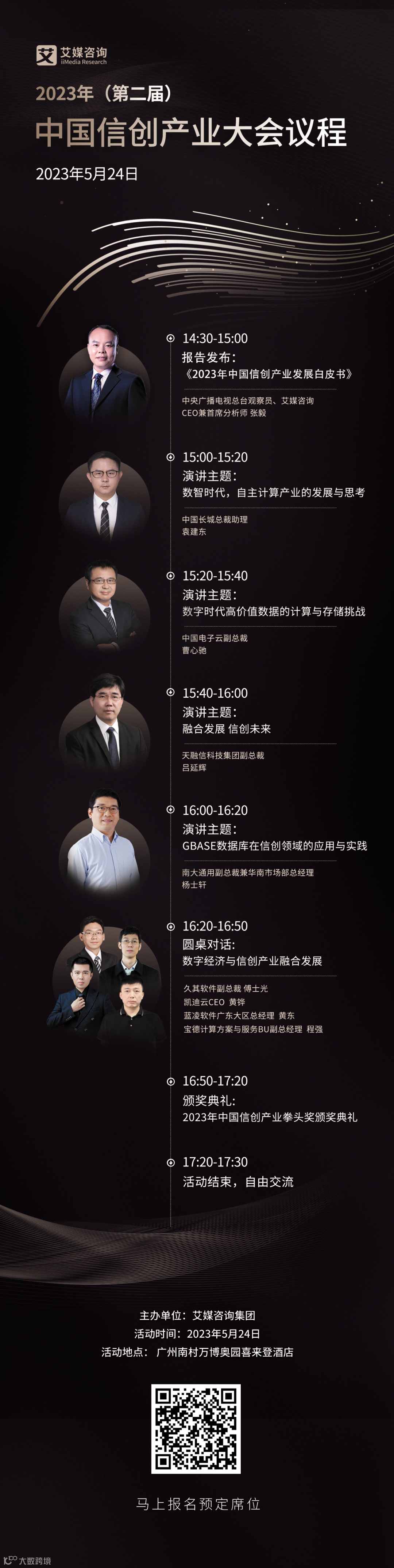 在此前研究的基础上,艾媒咨询将在本次大会上权威发布《2023年中国信创行业发展白皮书》,并邀请中央广播电视总台观察员、艾媒咨询CEO兼首席分析师张毅作主讲嘉宾,以数据为基准,结合艾媒长期的监测研究,聚焦2023年中国信创行业发展概况,深入探讨产业今后的发展趋势,助推中国信创产业高质量发展。