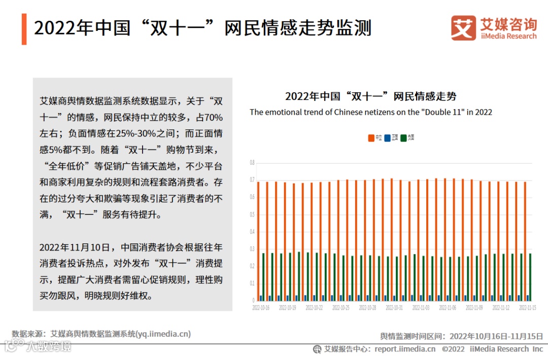 2022年中国“双十一”网民情感走势监测