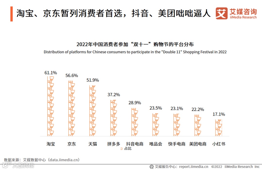 2.2022年中国消费者参加“双十一”购物节的平台分布