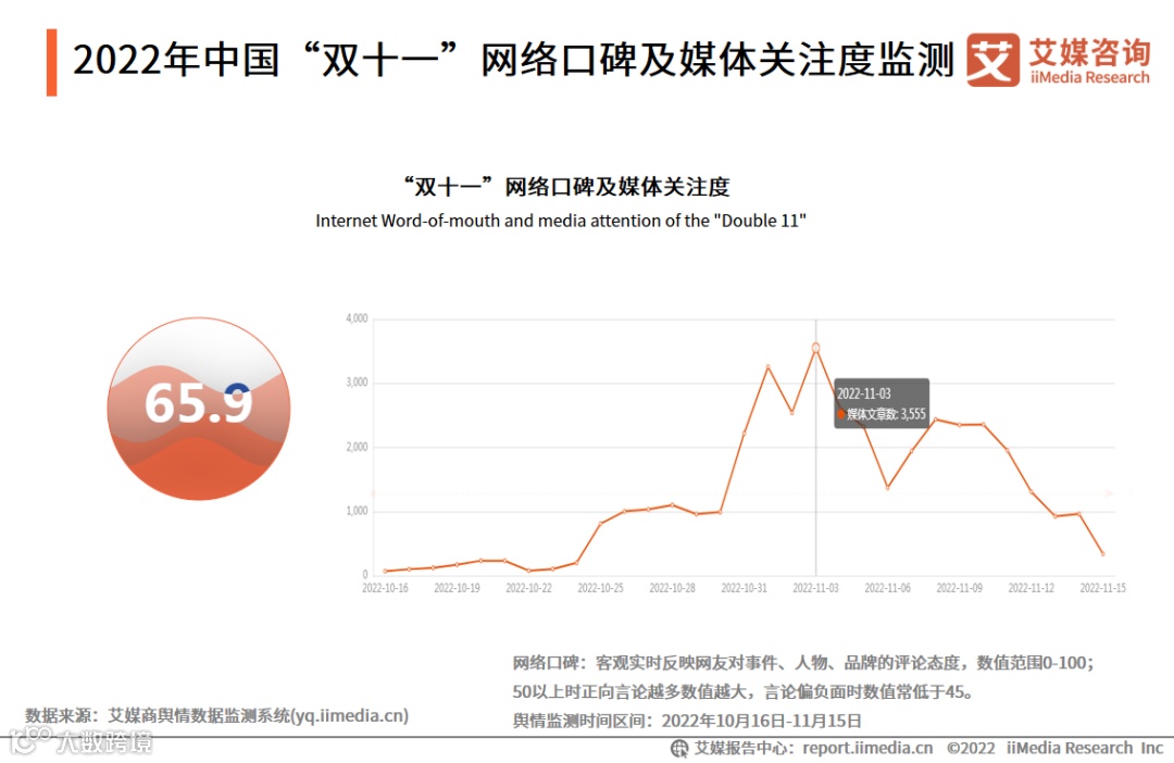 1.2022年中国“双十一”网络口碑及媒体关注度监测