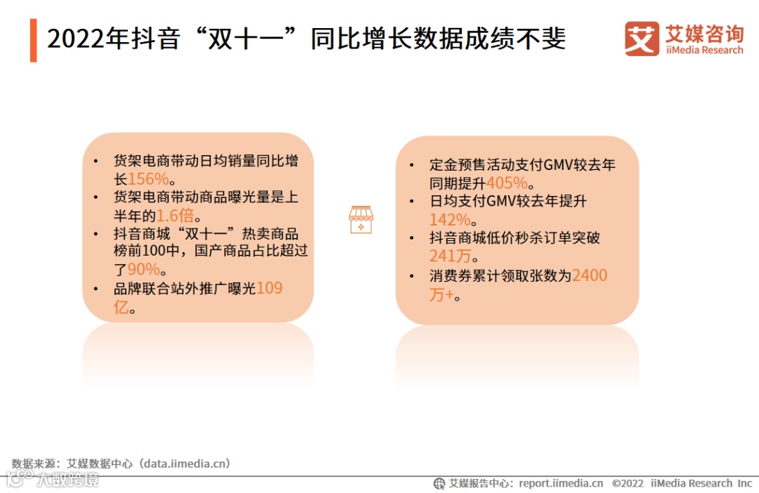 2022年抖音“双十一”同比增长数据成绩不斐