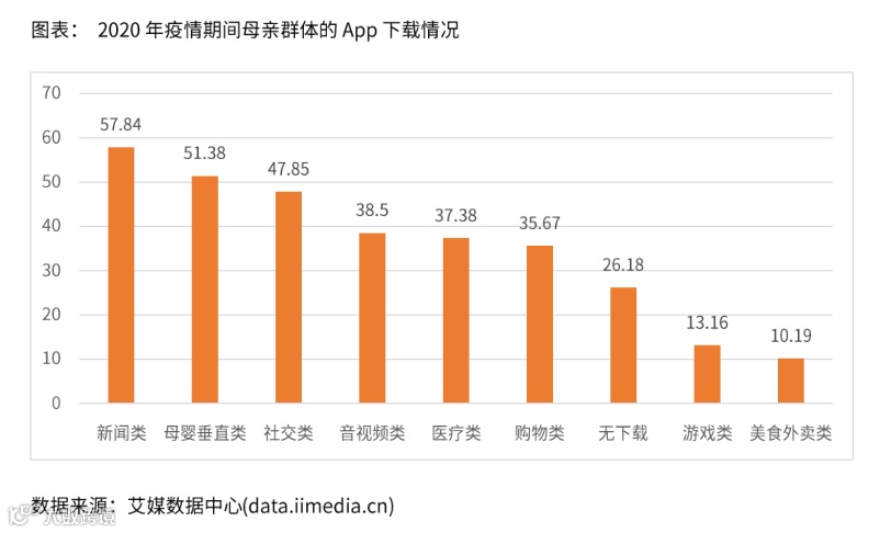 随着电商的发展渗透,许多行业都选择在电商平台布局销售链,争取拓展更大的市场。数据显示,2019年中国天猫平台的品牌电商服务商行业分布中,母婴行业占比16.7%,与居家日用行业相同,仅次于化妆品行业。疫情期间,线下销售渠道运行受到阻碍,但线上母婴平台活跃为婴幼儿产品的供应提供了有力保障。据调查,2020年疫情期间,中国母亲群体新下载最多的APP类型中,排名前三的是新闻类、母婴垂直类、社交类,其中选择下载母婴垂直类APP的占比达到51.38%。在出门受限的情况下,手机App成为了丰富用户业余生活的重要工具,母婴垂直类平台获得发展机遇,迎来上升期。