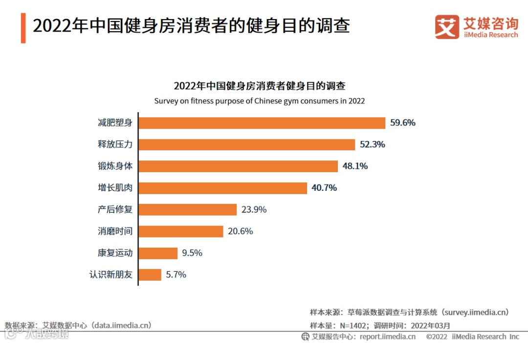 调研数据显示,近六成的健身房消费者前往健身房是为了减肥塑身,有五成消费者是为了释放压力。
