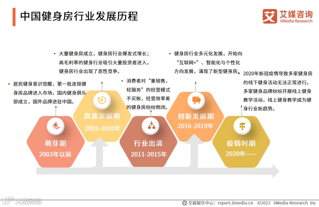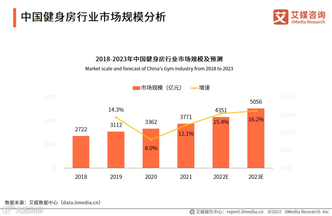 艾媒咨询分析师认为,居民运动健身意识逐渐增强,但疫情对传统健身房的经营造成了较大影响,健身线上化趋势有所增强。2021年后,健身房行业市场规模增速开始加快。