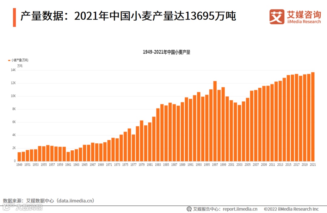 2.产量数据:2021年中国小麦产量达13695万吨