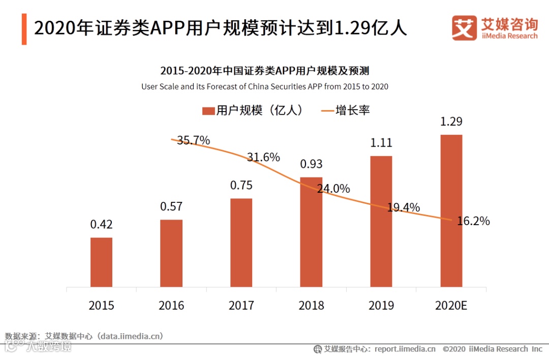 2020年证券类APP用户规模预计达到1.29亿人