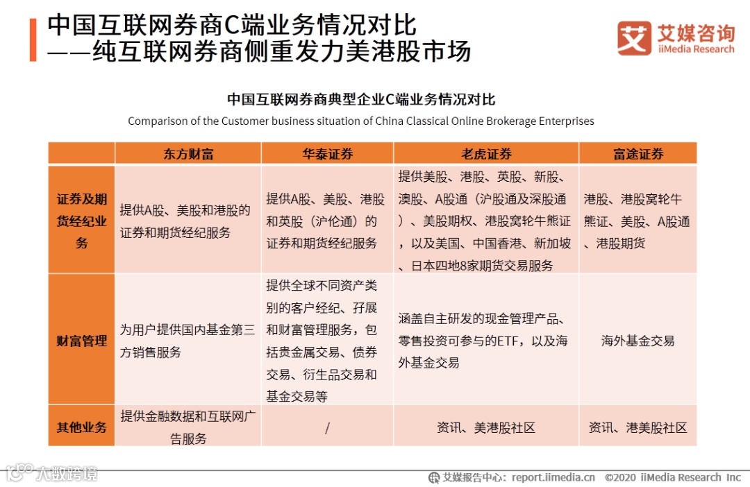 2. 中国互联网券商C端业务情况对比——纯互联网券商侧重发力美港股市场