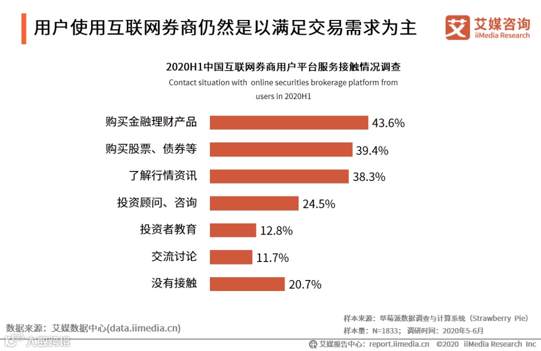 1. 用户使用互联网券商仍然是以满足交易需求为主