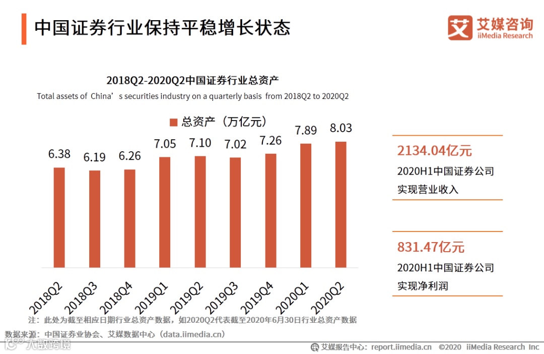 图表1:2018Q2-2020Q2中国证券行业总资产