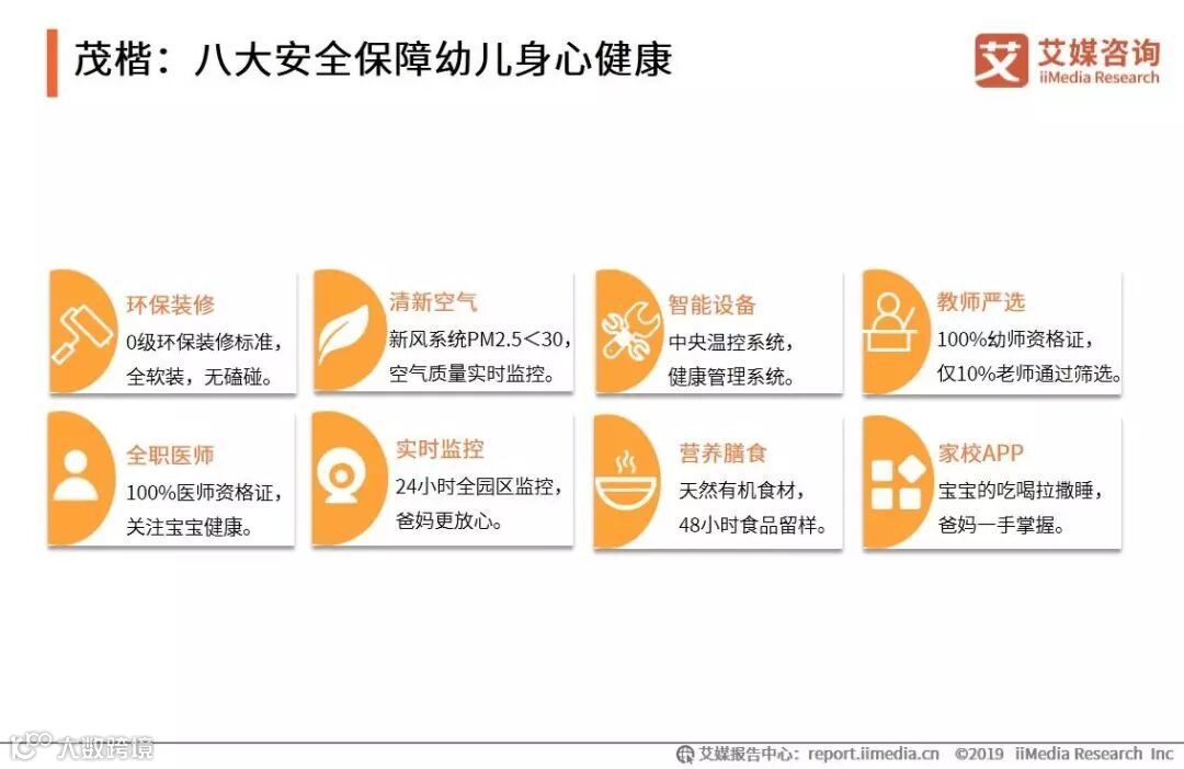 茂楷MoreCare成立于2017年,以线下中心为载体提供0-3岁婴童养教一体的教育服务,具体产品及服务包括全日托、科学养育、通识教育、父母工作坊、家庭教育咨询等, 在北京、上海、济南、武汉等城市均设有园区。2018年7月,茂楷进行品牌升级,旗下全日托中心更名为婴童学苑,定位转为“0-3岁全日制国际化教育机构”,将提供衔接国际幼儿园、国际学校、海外大学的国际早期教育内容,为孩子接受国际化教育铺路。