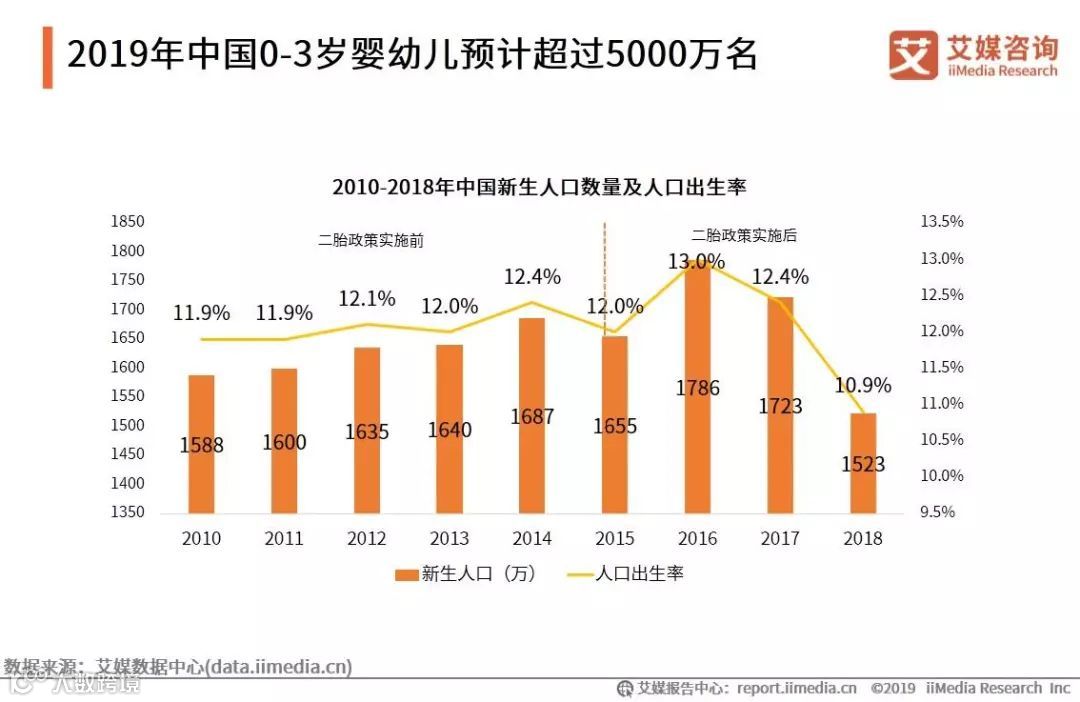 得益于中国逐渐放开二胎政策,2015年后中国人口出生率有明显上升。综合2016-2018年的新生人口,至2019年中国0-3岁婴幼儿群体预计超过5000万名,目前婴幼儿托育市场需求较大。此外,2017年释放了积累的生育势能后,出生率开始下滑,随着居民收入的提高和育儿需求的提升,整个养育体系从成本到精力日益奢侈品化。