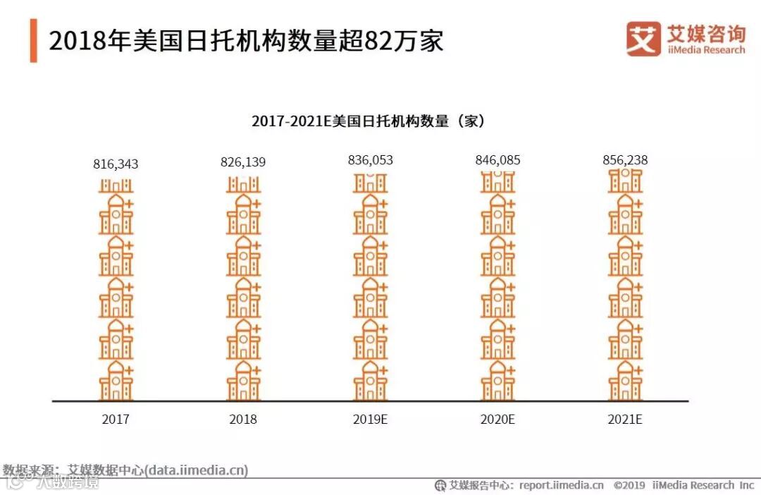 2018年,美国日托机构达826139家,相比2017年同比增长1.2%,美国托育行业的发展处于稳定期,预计未来也将逐年缓慢增长。艾媒咨询分析师认为,美国民众对婴幼儿托育服务需求巨大,在联邦政府及各州政府加大立法保障经费投入和行业扶持下,符合条件的日托机构将日渐增多。