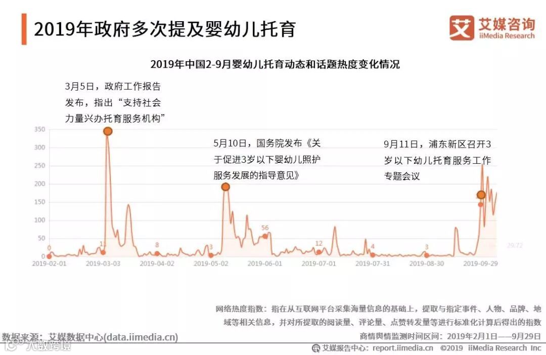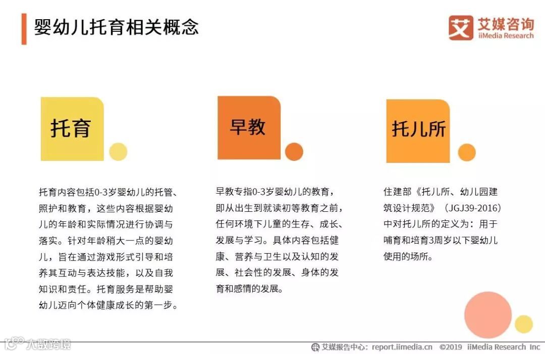 中国婴幼儿托育市场正在兴起。iiMedia Research(艾媒咨询)数据显示,2019年中国婴幼儿数量预计超5000万,2020年中国婴幼儿托育市场规模有望突破两千亿元。在政策引导和资本支持下,中国婴幼儿托育行业将进一步发展,与此同时,潜在的消费者意识也会逐渐提高。