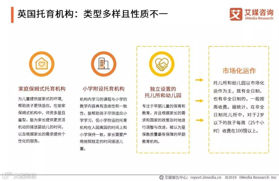 2011年英国接受托育服务的婴幼儿数量较2010年有了跳跃式增长,增长率近20%,随后呈现平稳的增长态势。这次大规模增长得益于英国政府在2010 年明确提出“重视 0-3岁婴幼儿教育”,随后英国教育部也在 2012 年启动了0-3 岁婴幼儿早期教育试点项目。从2016年到2018年,英国每年接受托育服务的儿童均超3.2万人。艾媒咨询分析师认为,在英国政府支持下,未来几年内英国托育幼儿年规模将稳定在3.2万人左右。