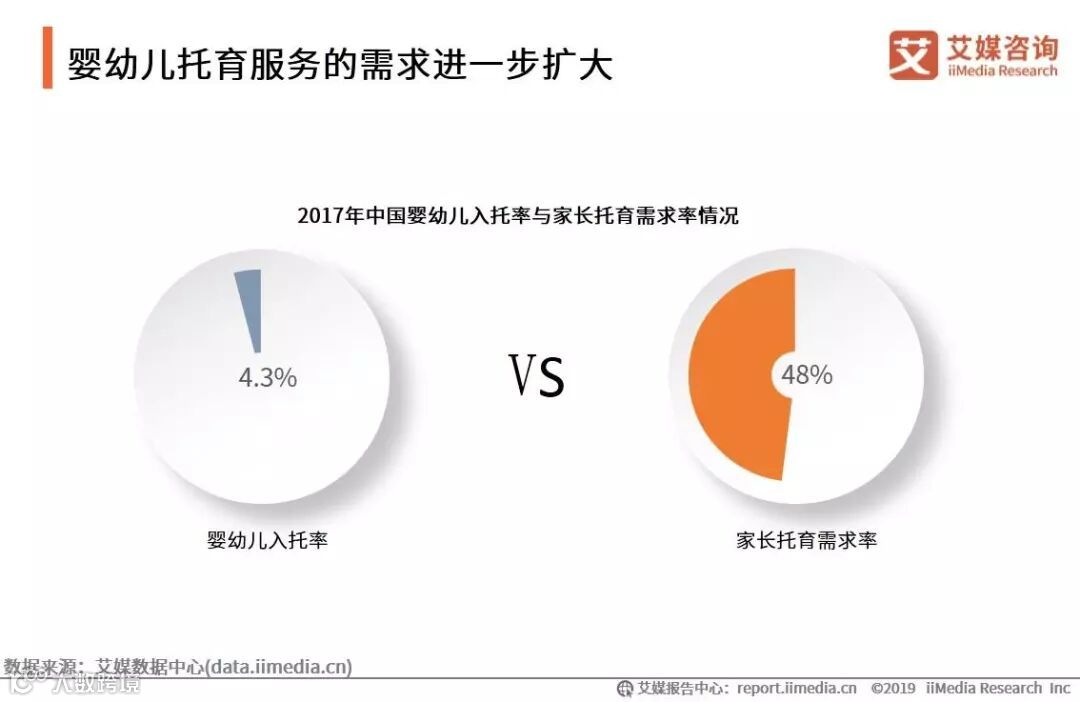 2017年,中国3岁以下婴幼儿入托率仅为4.3%,而48%的婴幼儿家长需要托育。艾媒咨询分析师认为,随着育儿品质化的趋势,中国幼儿家庭对优质婴幼儿托育服务有着强烈需求。目前中国婴幼儿托育服务起步较晚,相关政策的法规不健全,行业运营体系不成熟,社会力量参与积极性较低,中国婴幼儿托育服务市场供需矛盾突出。在此状况下,中国婴幼儿托育行业有望进一步发展以满足中国幼儿家庭的需求。
