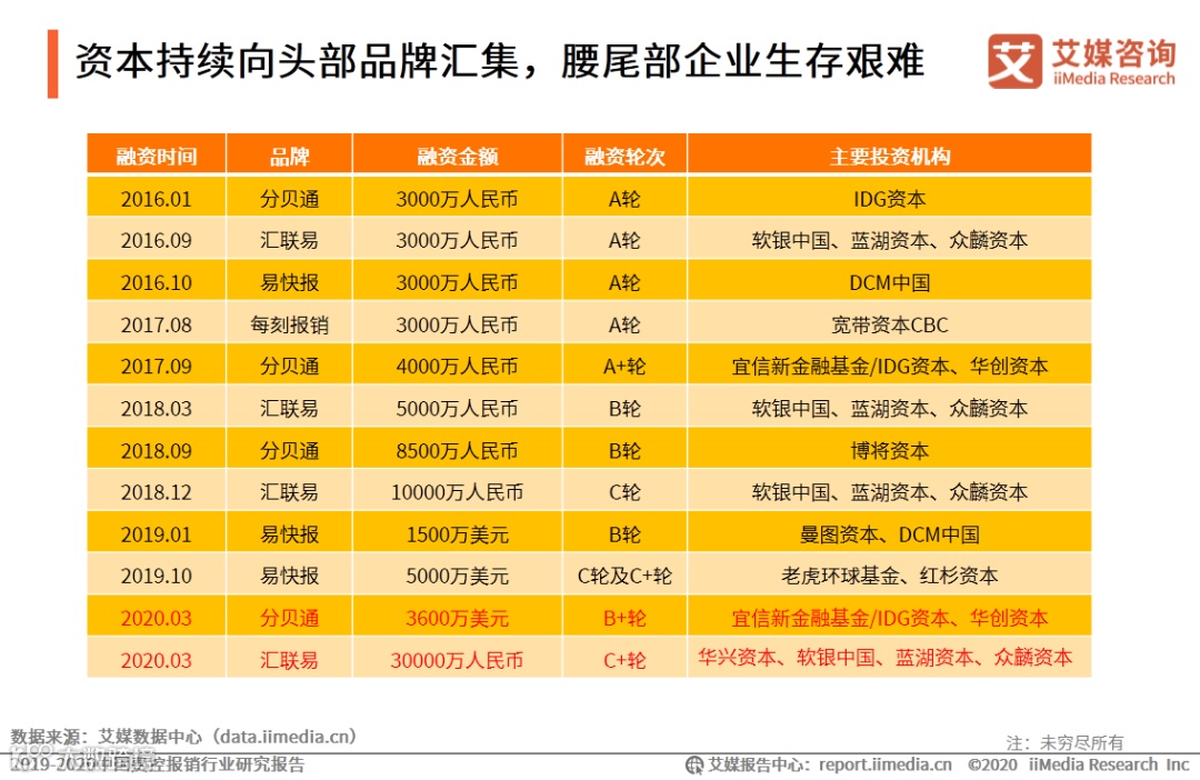资本寒冬费控报销品牌依然能获得老股东的持续投资,进一步凸显赛道发展潜力,但资本持续向头部品牌汇集,将进一步恶化腰尾部企业的生存环境。