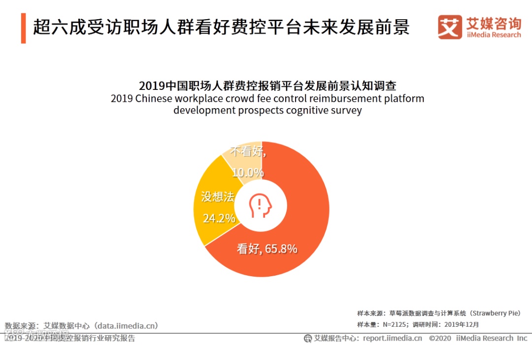 iiMedia Research(艾媒咨询)数据显示,此次受访的职场人群中,有65.8%的人看好费控平台未来发展前景。艾媒咨询分析师认为,人们对数字化技术的认知度和依赖度将会随着技术的成熟化应用不断加深,职场人群对费控报销平台的乐观态度源于他们对费控报销环节“积怨”已久,期待借助技术手段解决痛点。
