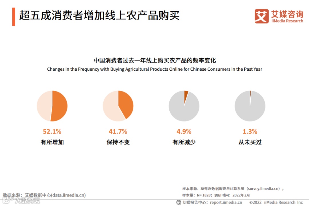 1.超五成消费者增加线上农产品购买