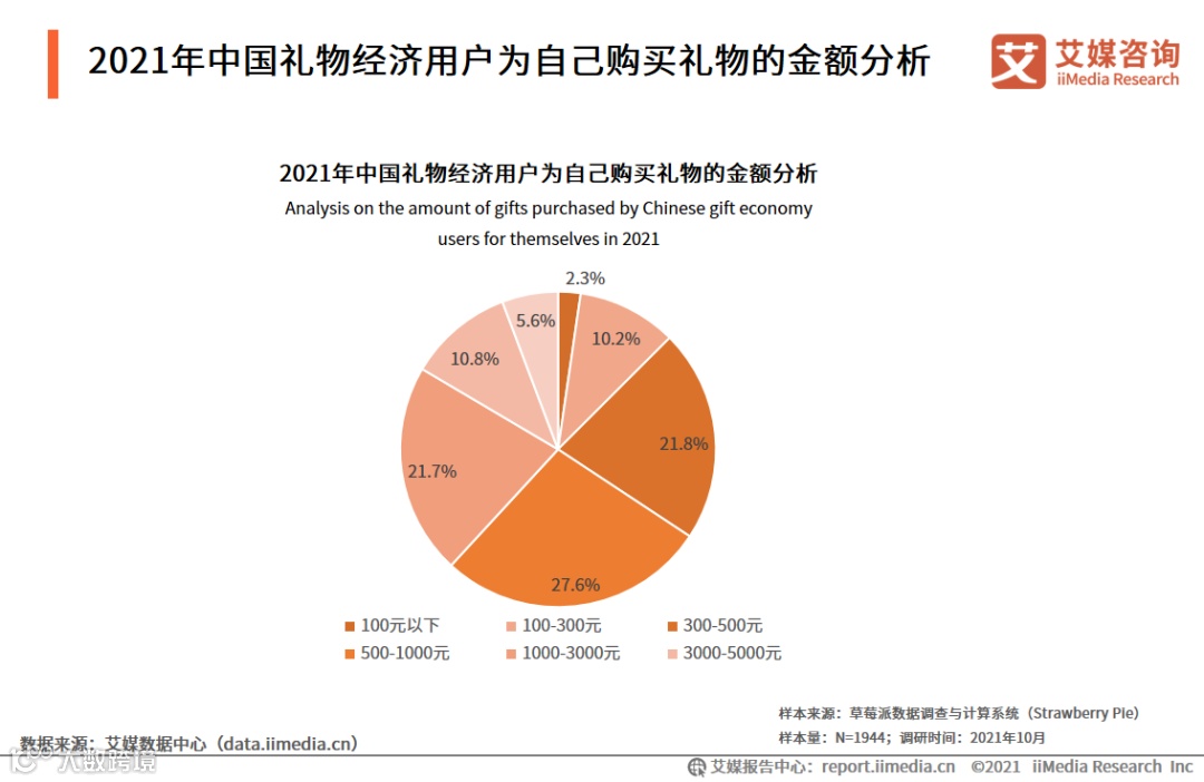 用户调研:2021年中国礼物经济用户人均年送礼金额2357.6元