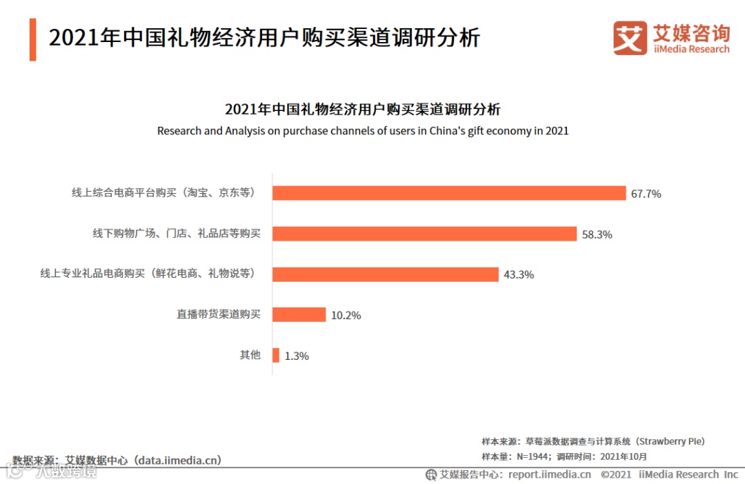 2021年中国礼物经济用户购买渠道调研分析