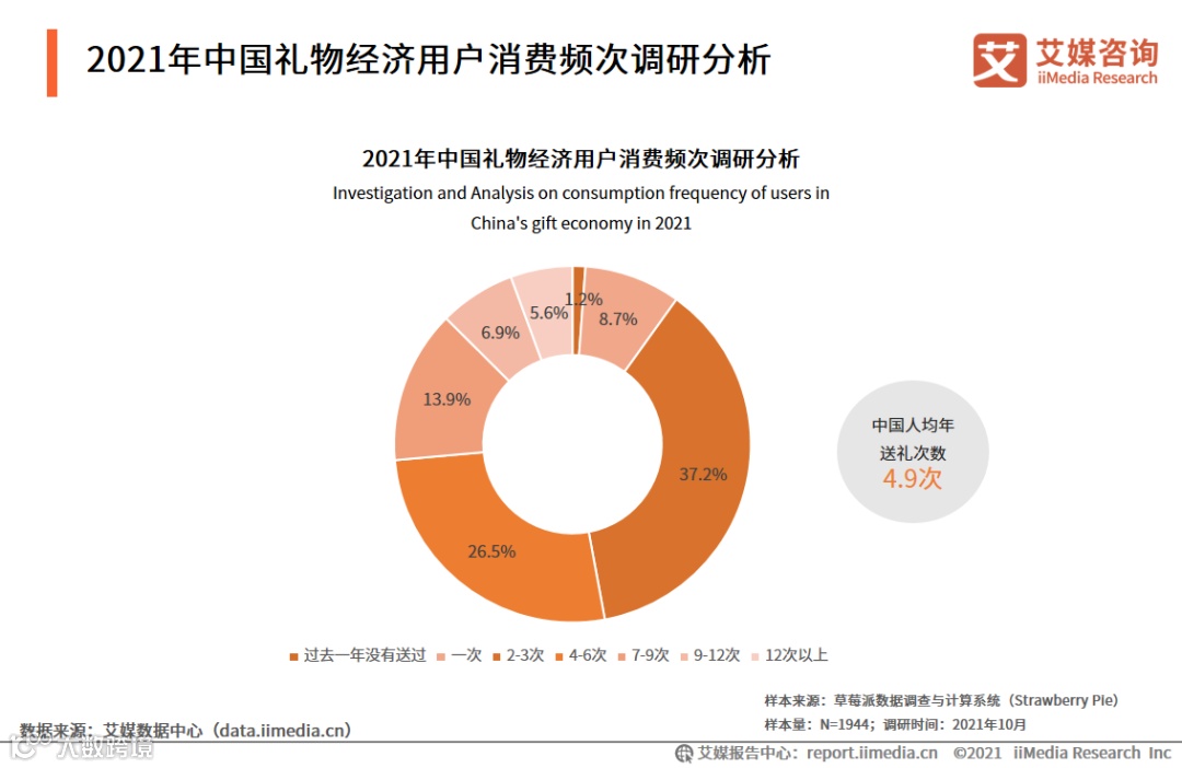 1. 2021年中国礼物经济用户消费频次调研分析