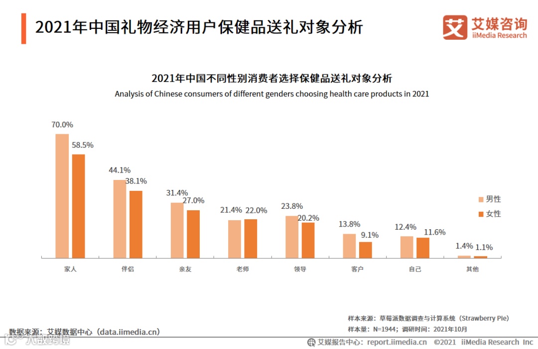 2021年中国礼物经济用户保健品送礼对象分析