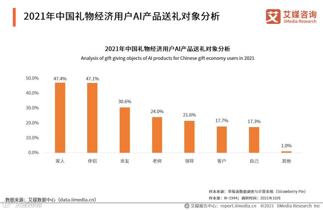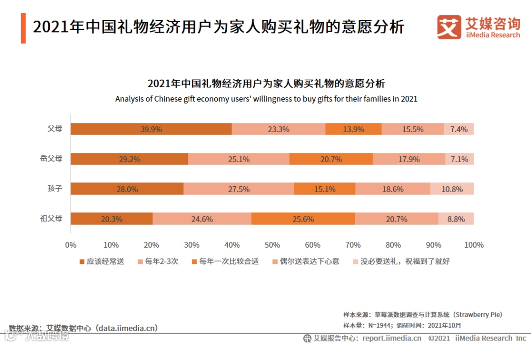 1. 2021年中国礼物经济用户送礼对象调研分析:家人