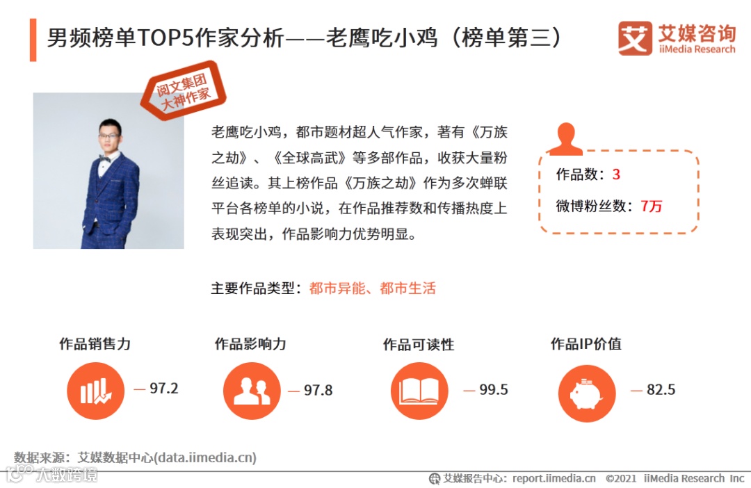 男频榜单TOP5作家分析——老鹰吃小鸡(榜单第三)
