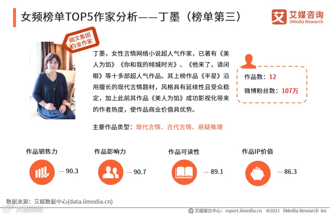 7. 女频榜单TOP5作家分析——丁墨(一)