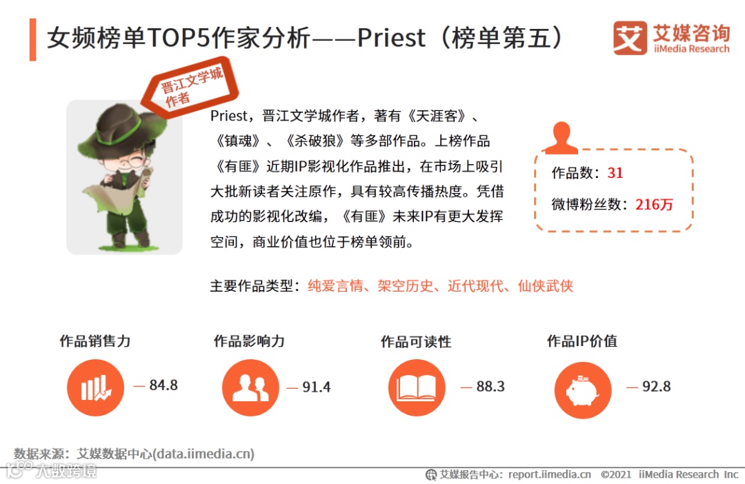 女频榜单TOP5作家分析——Priest(榜单第五)