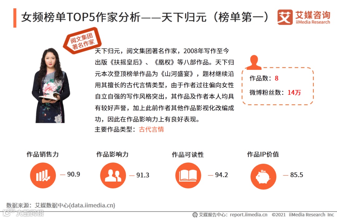 女频榜单TOP5作家分析——天下归元(榜单第一)