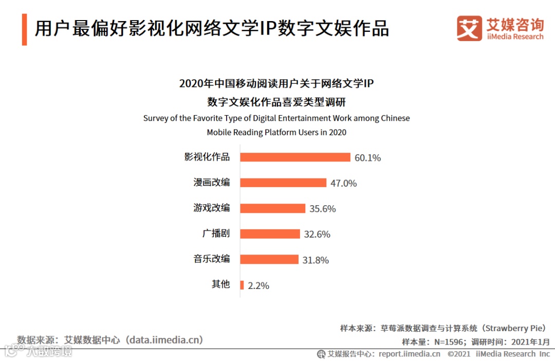 2.10 用户最偏好影视化网络文学IP数字文娱作品