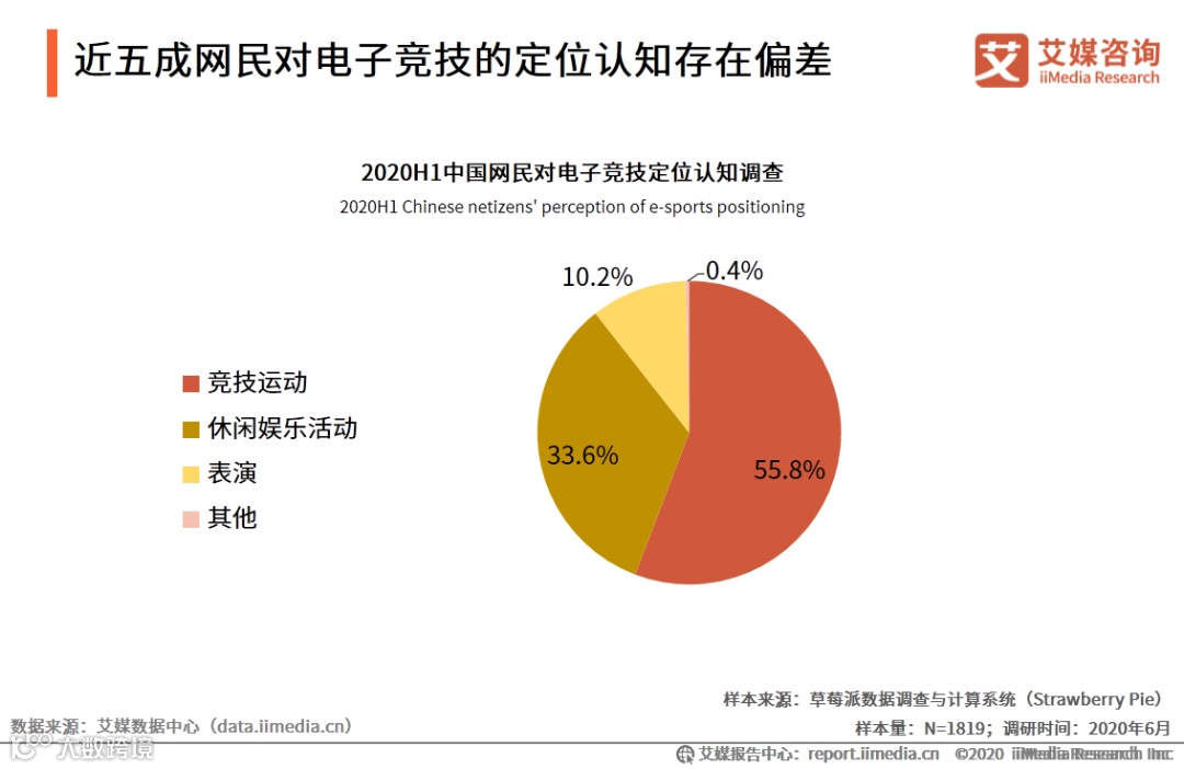 1. 近五成网民对电子竞技的定位认知存在偏差